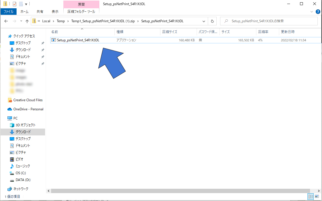 解凍されアプリケーションソフトの「 Setup_psNetPrint_S4R1X3DL .exe」をクリック